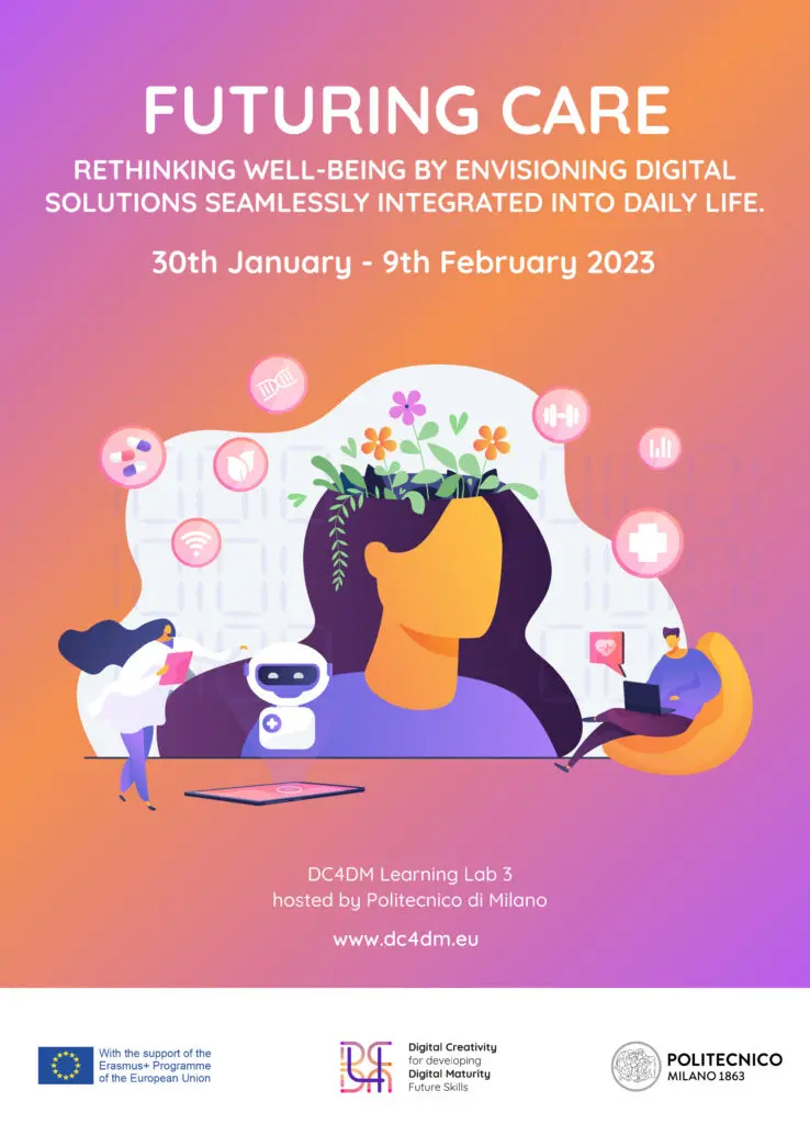 We are pleased to present the 3rd Learning Lab organized by Politecnico di Milano, entitled “FUTURING CARE. Rethinking well-being by envisioning digital solutions seamlessly integrated into daily life“, a 10-days design-led workshop during which students from design, engineering and management will work collaboratively to imagine a new concept of “care” in 2030 enabled by new emerging technologies and design new tech solutions for more sustainable and ethical futures.