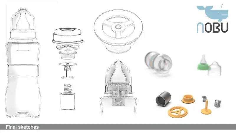 NOBU is an intelligent baby bottle equipped with a safety valve that allows milk to be dispensed only at the right temperature. One SMA spring, located in the heart of the valve is able to sense the temperature of the milk and react accordingly: if the milk is too hot, the valve prevents it from being dispensed. Milk can flow only at the correct temperature at which the SMA has been engineered: no thermometers, batteries, electric actuators and complex mechanisms are required.