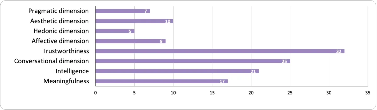 - Updating UX dimensions. Through literature review and questionnaires with expert users, we identified the qualities users are looking for in Ai-infused products and understood how they affect the user experience.