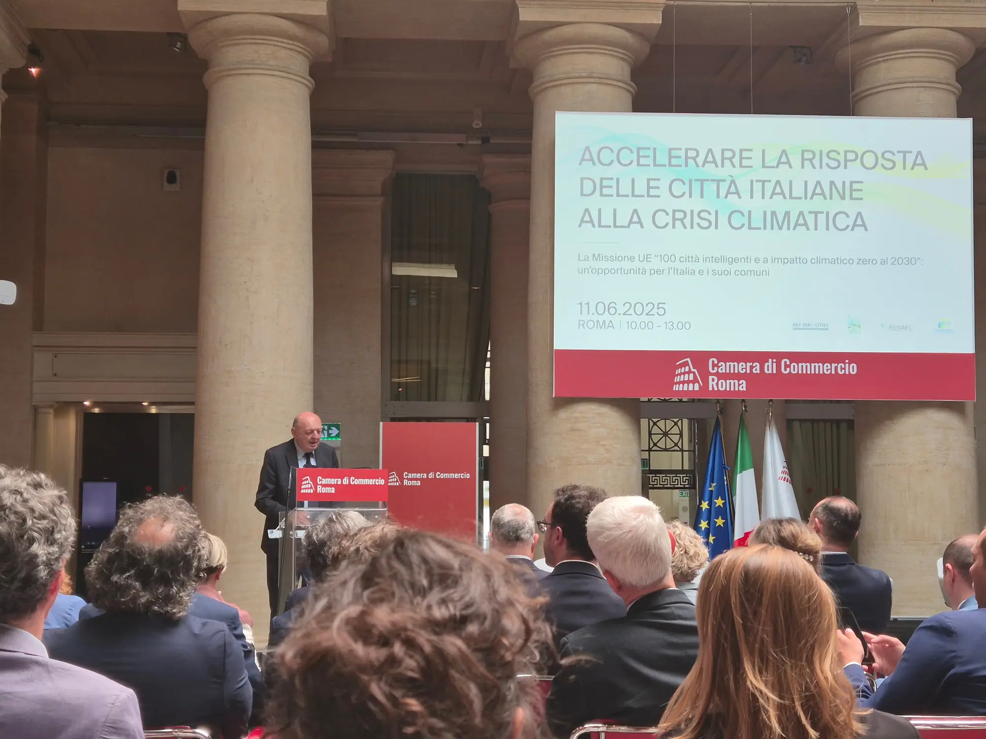 The event Accelerare la risposta delle città italiane alla crisi climatica co-organized in Rome in June 2025 by the NetZeroCities team of the Department of Design, marked an historical moment for Italian cities. The unique location of the 2000-year-old Temple of Hadrian hosted the first official dialogue between Italy’s nine Mission Cities (Bologna, Milano, Torino, Firenze, Parma, Padova, Bergamo, Prato, Roma), the national government (represented by the Minister for Environment and Energy Security Gilberto Pichetto Fratin), the European Commission (including the Deputy Manager of the EU Cities Mission Philippe Froissard), and the European Investment Bank.
