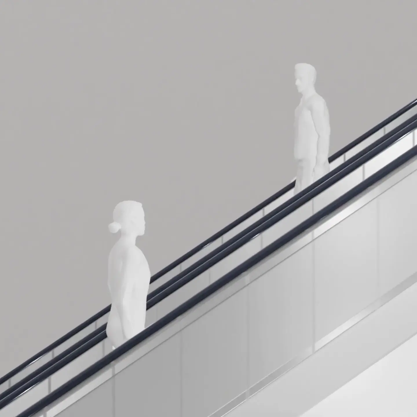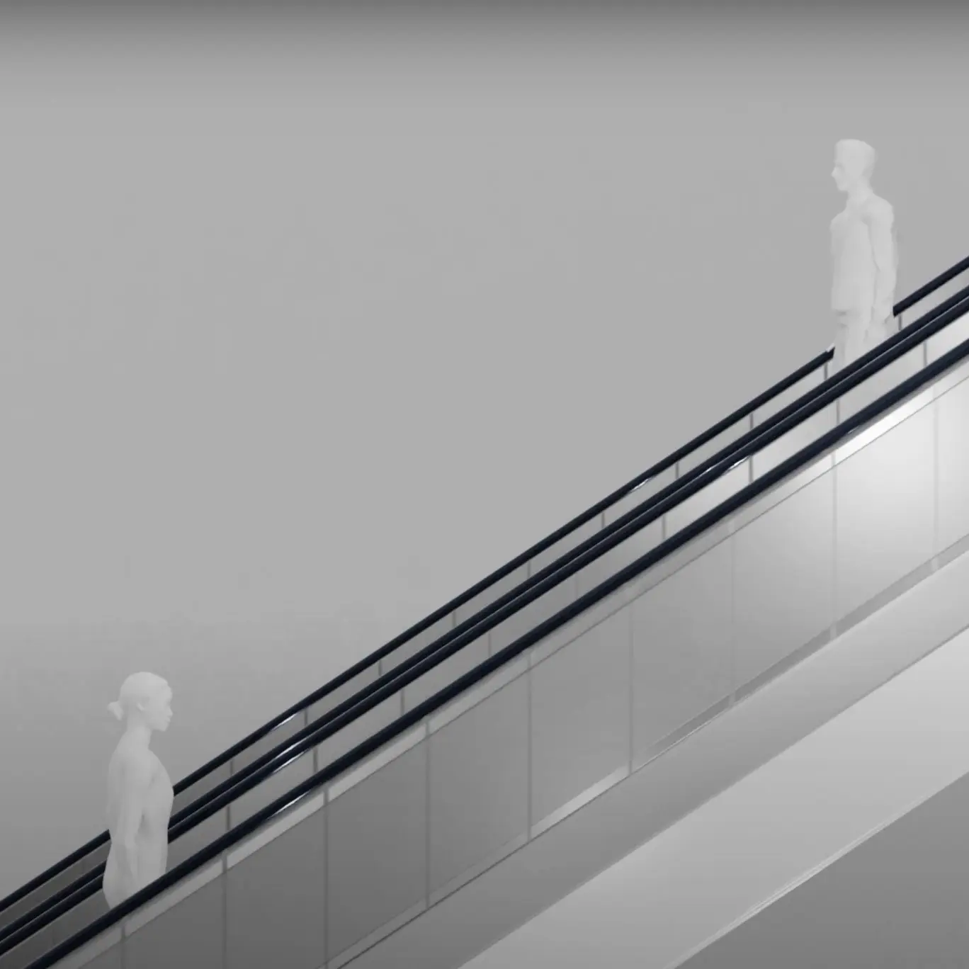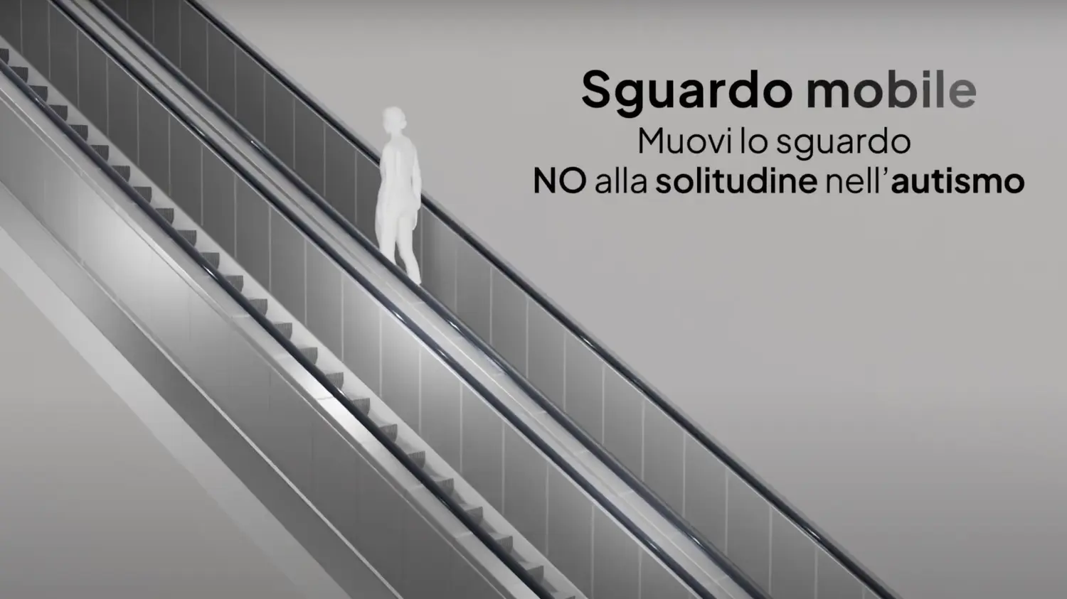 The video installation proposes a scenario with escalators extending infinitely, in a place without a specific location in space and time, a non-place, where the only significant space is the meeting of gazes.