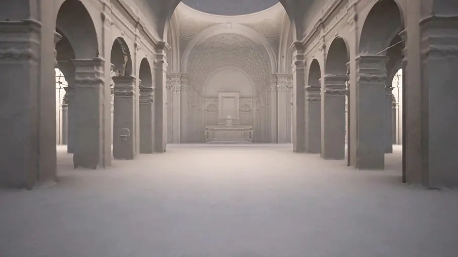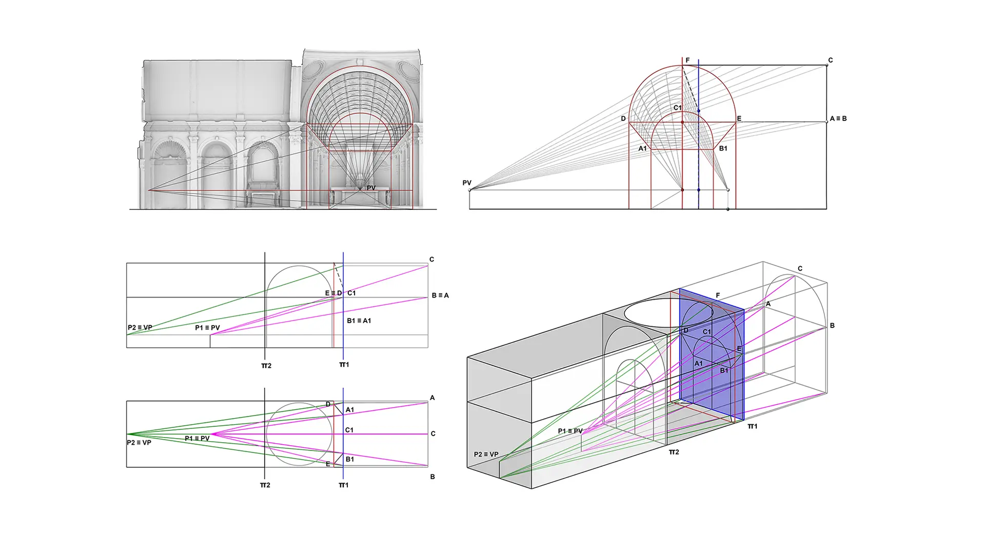- A digital solid/3D reconstruction of the architectural illusion in connection to the real architecture that contains it.