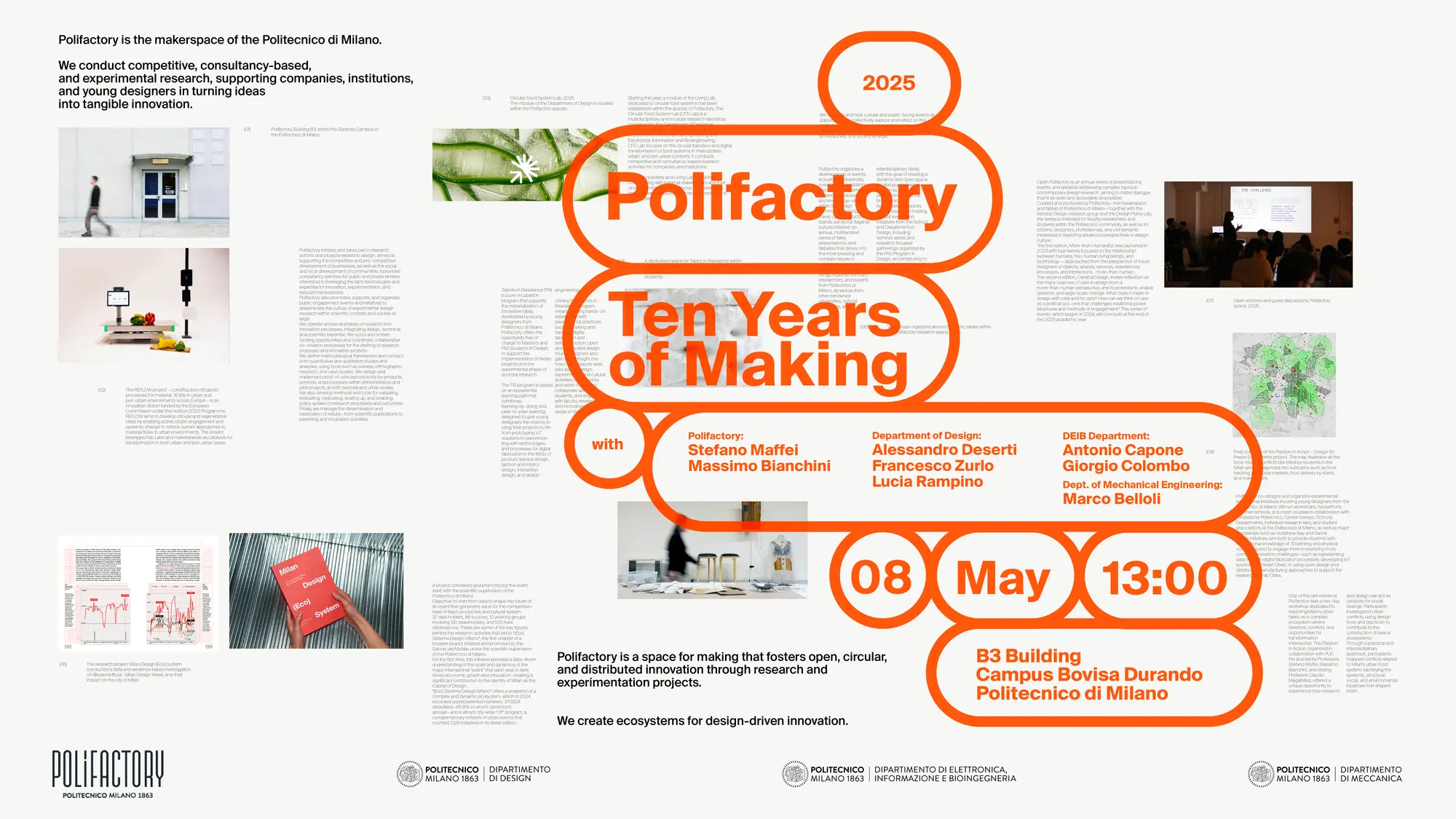 Quest’anno ricorrono i dieci anni dall’apertura di Polifactory, il makerspace del Politecnico di Milano. Un laboratorio multidisciplinare nato per sperimentare la ricerca attraverso l’innovazione progettuale, diventato negli anni un punto di riferimento per la nostra comunità accademica.