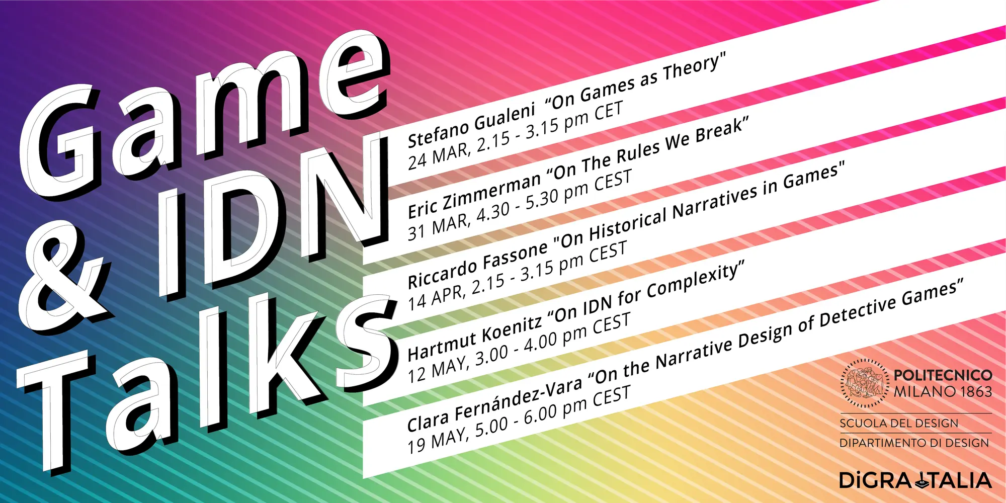 Un nuovo ciclo di open lectures su Interactive Transmedia Narrative e Game Studies organizzato da llaria Mariani e Mariana Ciancia all'interno del ComplexArtefacts and System Design Studio, MSc in Communication Design, Scuola del Design, Politecnico di Milano, nell'ambito della DiGRA Italia Talks Series.