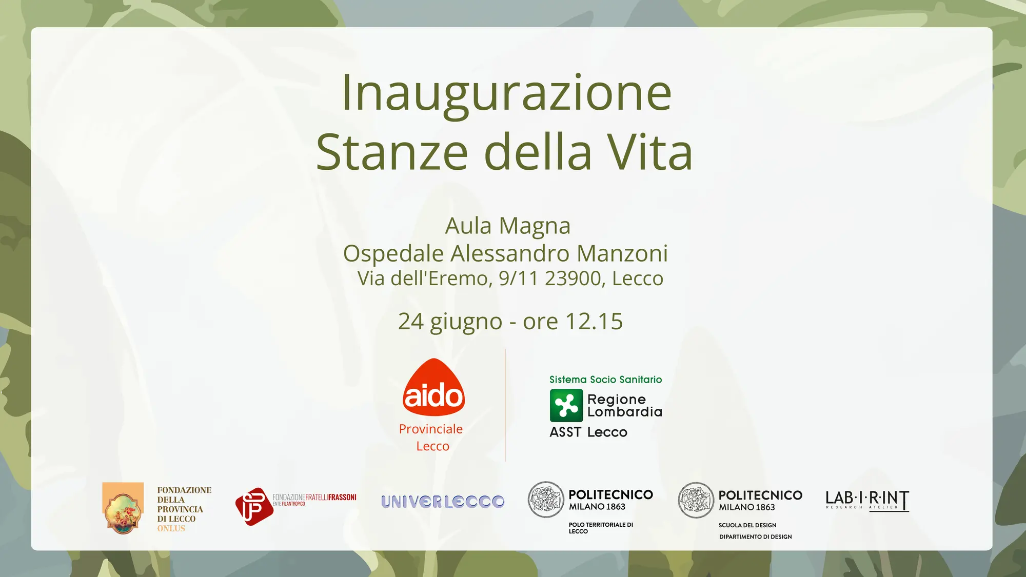 Verranno inaugurate il 24 giugno le nuove Stanze della Vita presso l'Aula Magna dell'ospedale A. Manzoni di Lecco. Il progetto è curato dal gruppo di ricerca Labir_int, che ha stilato le linee guida per le Stanze.