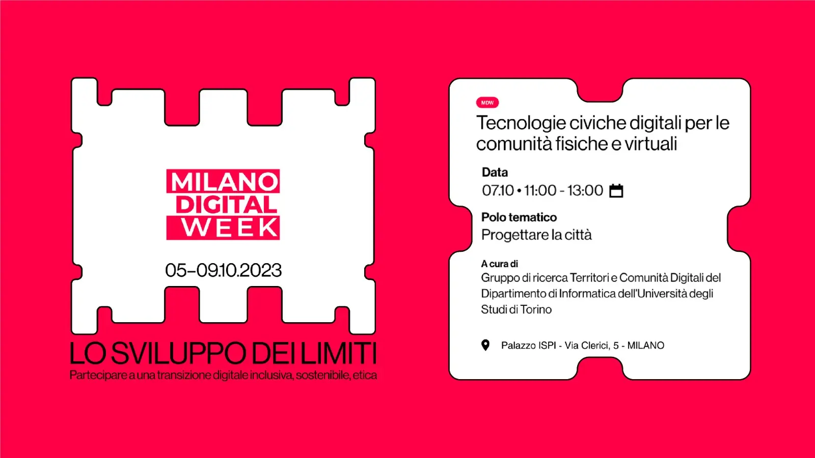 L'evento fa parte di "Progettare la città", uno dei sette poli tematici della Milan Digital Week 2023 dedicato a idee, visioni e progetti condivisi con l'intera città e le sue comunità.