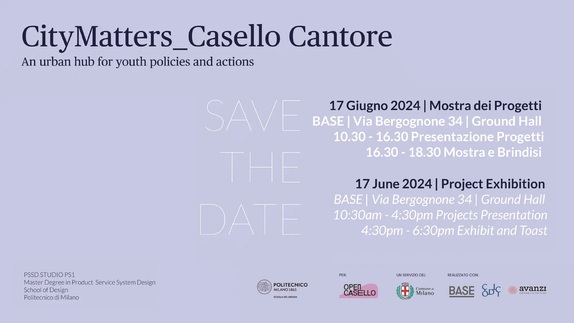 Il laboratorio CityMatters_Casello Cantore | An hub for youth policies and actions del primo anno di Laurea Magistrale in Product Service System Design (PSSD) della Scuola del Design del Politecnico di Milano si propone di riflettere sulle relazioni tra spazi e servizi.