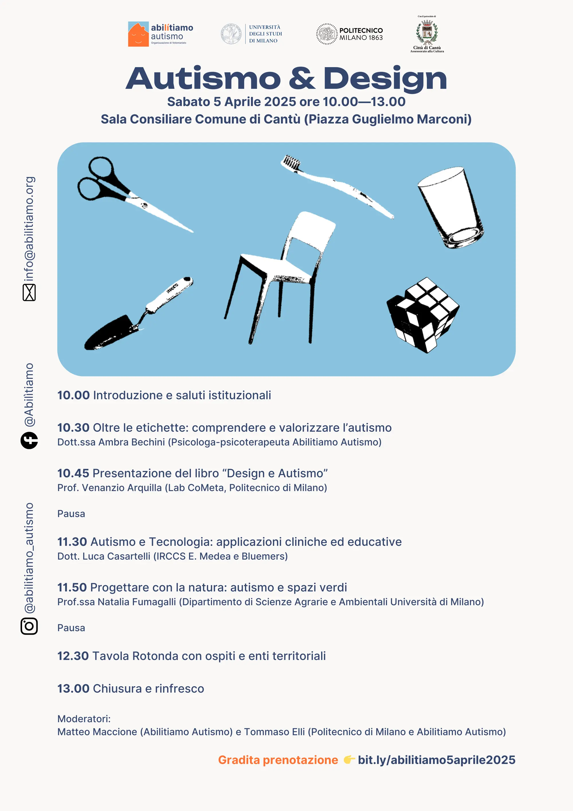 Sabato 5 aprile 2025, presso la Sala Consiliare del Comune di Cantù, si terrà il seminario "Autismo e Design".