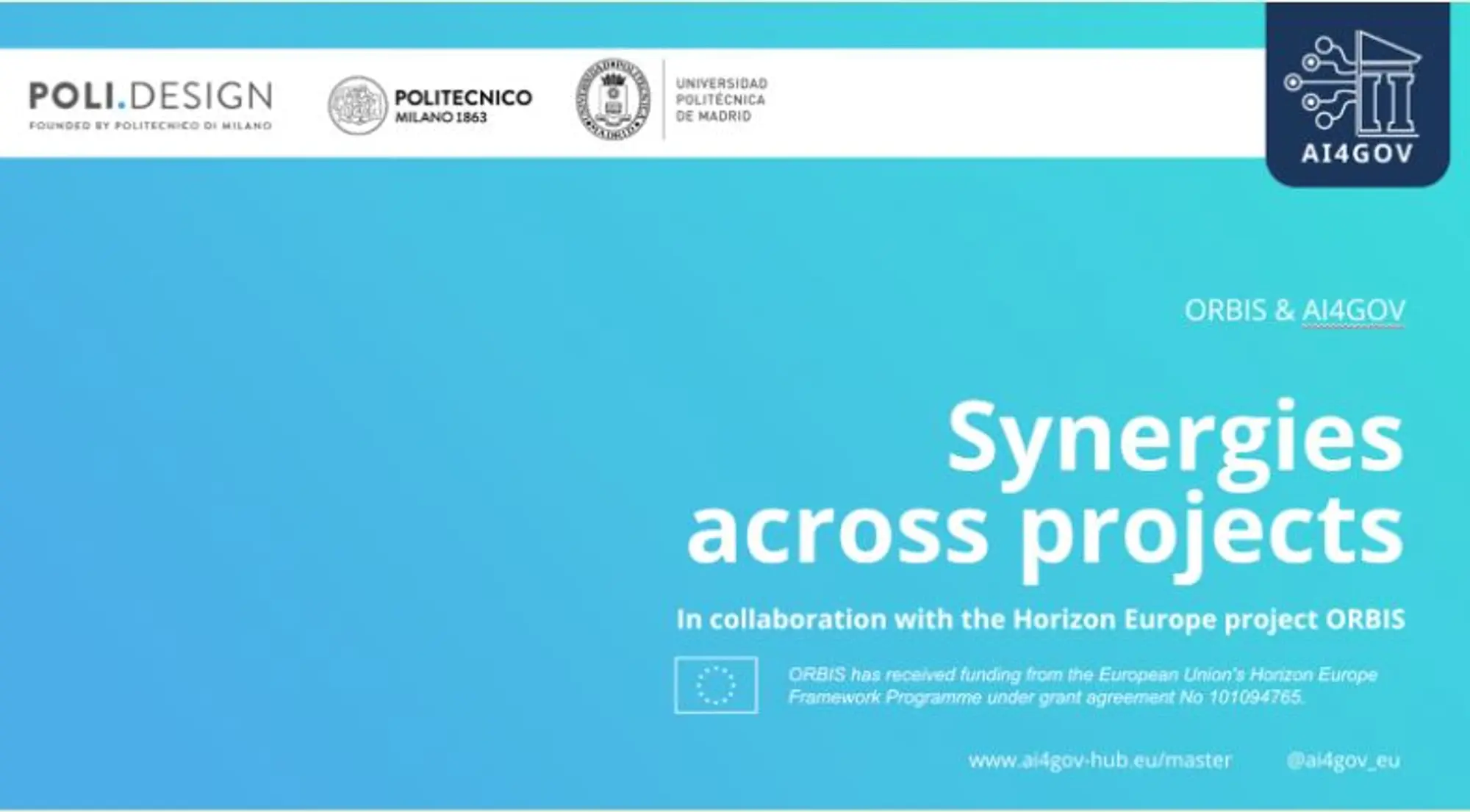 Il progetto Horizon Europe ORBIS (coordinato da Francesca Rizzo, con Grazia Concilio, Ilaria Mariani e Anna Moro) è entrato in sinergia con il Master Artificial Intelligence for Public Services (AI4GOV) di POLI.design, in particolare nell'ambito del Project Work 3 (PW3) - un modulo di cinque settimane incentrato sull'IA per l'ascolto attivo e la partecipazione dei cittadini, condotto da Ilaria Mariani (in rappresentanza del team di coordinamento di ORBIS) e Oscar Corcho, con Riccardo Ventura. Questa collaborazione tra i due progetti unisce la ricerca avanzata all'apprendimento accademico, offrendo agli studenti un approccio pratico alle applicazioni reali dell'IA nella governance.