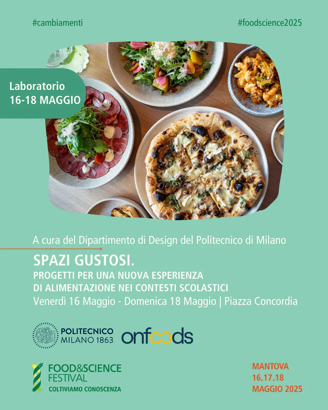 Durante l'evento, OnFoods sarà presente con uno stand situato nel cuore della città di Mantova. Questo spazio espositivo racconterà il frutto del lavoro congiunto di un gruppo di ricercatori e docenti dei Dipartimenti di Design e Chimica Industriale, e di 37 studenti internazionali della Laurea Magistrale in Interior and Spatial Design. Attraverso dieci progetti innovativi, il pubblico sarà invitato a esplorare domande cruciali come: quali spazi possono supportare la produzione, il consumo e la trasformazione del cibo nelle università? Come integrare tali spazi nelle food policy degli atenei? E come ridurre l'uso degli imballaggi alimentari?