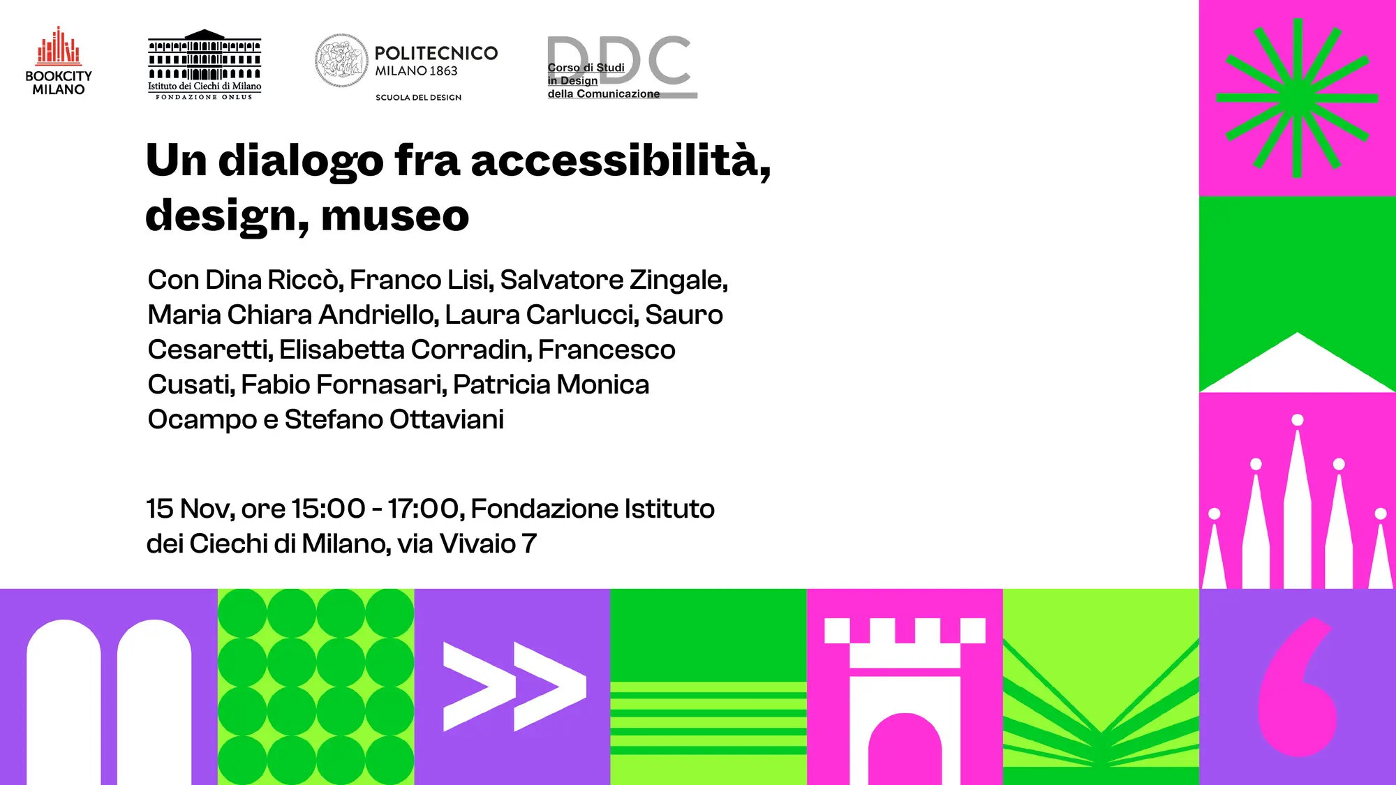 In occasione di BookCity Milano, la Fondazione Istituto dei Ciechi di Milano e il Corso di Studi in Design della Comunicazione del Politecnico presentano “Un dialogo fra accessibilità, design, museo”, con Dina Riccò, Professoressa associata del Dipartimento di Design e curatrice del volume open access Accessibilità museale. Le prospettive per il design della comunicazione (FrancoAngeli, 2023).