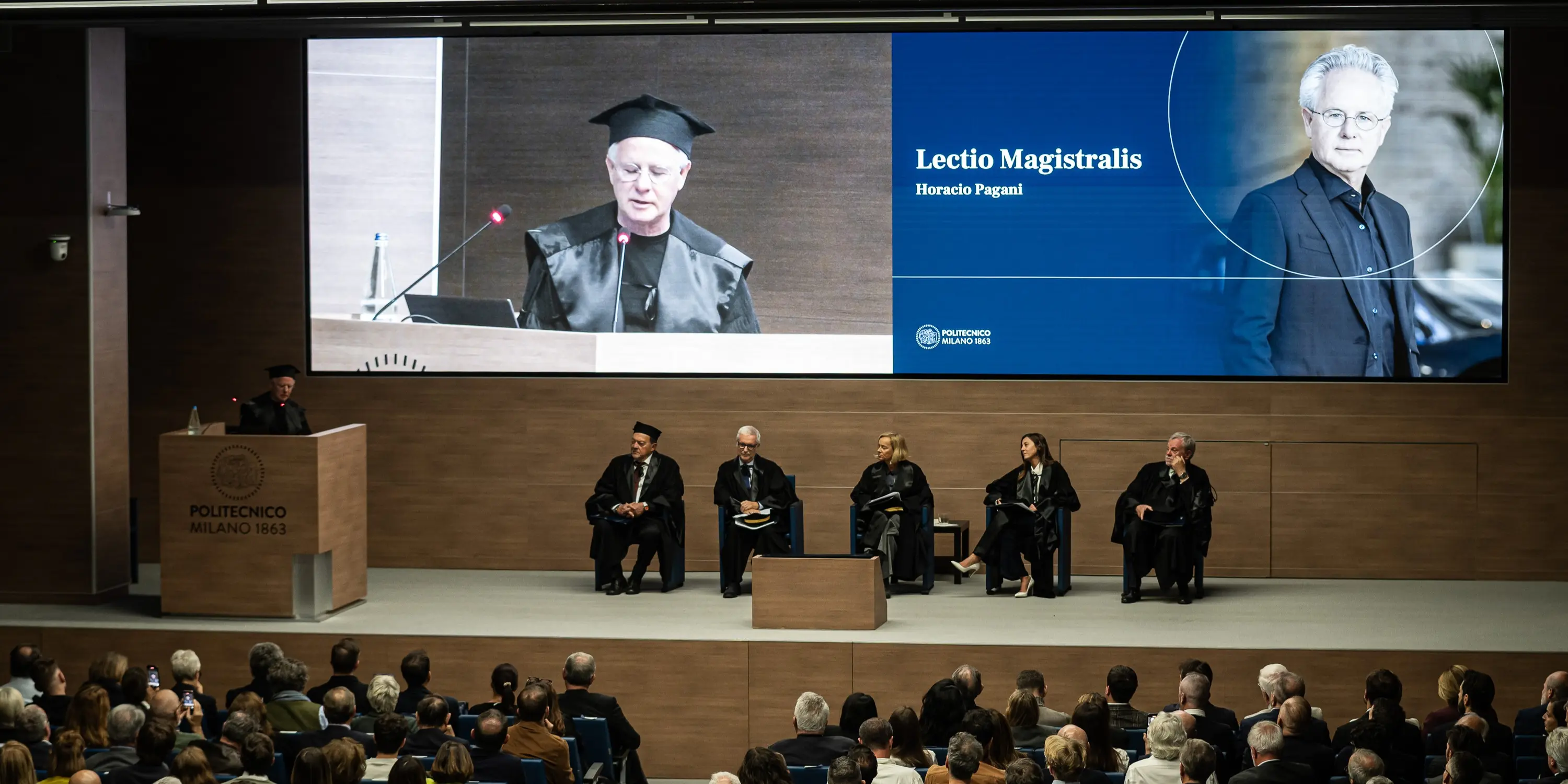 A dare avvio all’evento i saluti istituzionali della Rettrice Donatella Sciuto, seguiti dalla Laudatio del professor Giorgio Colombo, docente del Dipartimento di Meccanica. Pagani ha poi tenuto una Lectio Magistralis rivolta alla comunità accademica, condividendo la sua visione progettuale e il valore della ricerca continua come motore dell’innovazione.